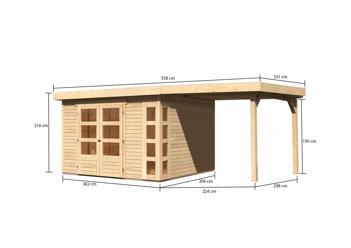 Cabane de jardin Kerko 6 Karibu avec abri - 542 x 306 x 216 cm - Epaisseur de cloisons 19mm